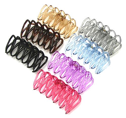 【色】横の写真・右上から時計回りに透明グレイ・透明ブルー・透明パープル・透明レッドブラック・べっ甲・透明ブラウン【仕様】フランス製三辺の最大の長さ:約10X4X4センチ(直線距離です)レース模様のおしゃれなカラフル・フランス製パンス♪華奢なつくりだけど、しっかり留まるオススメアイテム!!ブラック・べっ甲以外は、透明(トランスパレント)カラーのすっきりきれい色! ※→レースパンス ミニは コチラ
